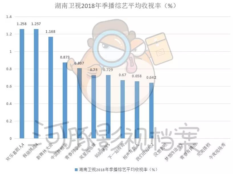 到了2018年,湖南卫视在季播综艺上的表现更加让人唏嘘。只有《向往的生活2》和《歌手2018》成功突破1的平均收视,其他节目不痛不痒。