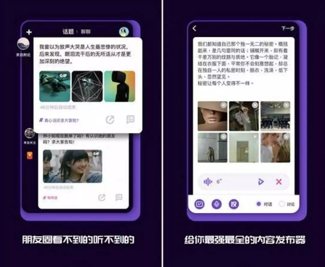 从王欣的角度来看,匿名社交能绕过微信熟人社交的主战场,在圈地之外占领一片安身之地。况且,匿名社交还能有效降低实名社交的压力,释放人性本质中的表达欲和好奇心。