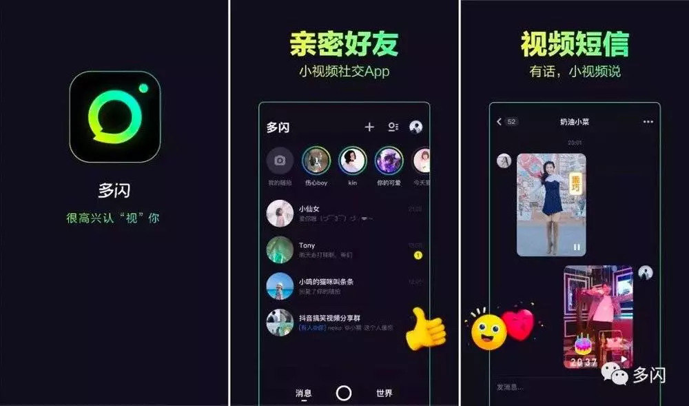 多闪没有公开社交场景,“发评论不如聊私信”,这是一对一(或者说一对少);就像今日头条CEO陈林所说,多闪只把最亲密的人联系起来,是做亲密好友之间的社交,陌生人有限制沟通,这是熟人社交;而“有事,小视频说”,这是更倾向于同步。
