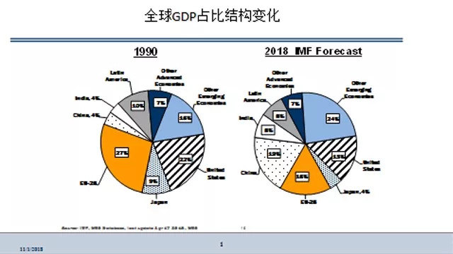 2008年到今年十年间,2018年是全球经济增长速度的最高峰,今后两三年经济增长速度会逐渐下滑,这是一个特别重要的概念。