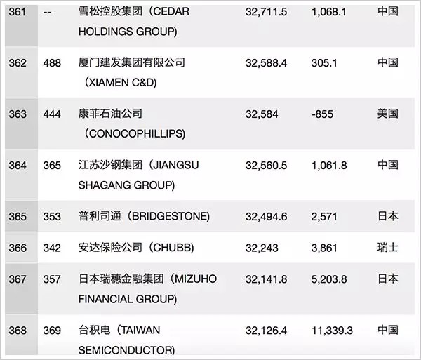 ▲初入世界500强的雪松即排位诸多世界知名企业之前