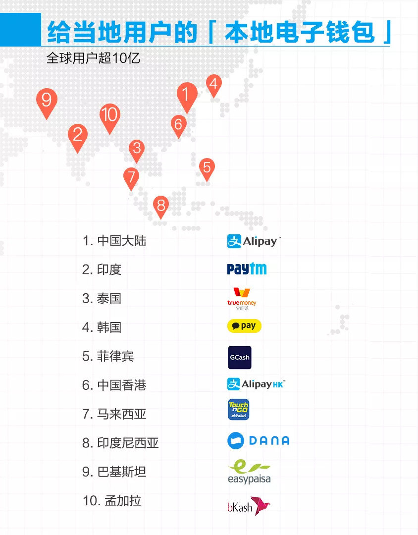 它更多的冲动来自自身发展的需要——一方面跟着中国游客出海,将触角拓展到全球40多个国家和地区,另一方面是输出技术和生态能力,在不同的国家和地区打造本地化的电子钱包,从而构建起全球的支付网络体系,掌握话语权。