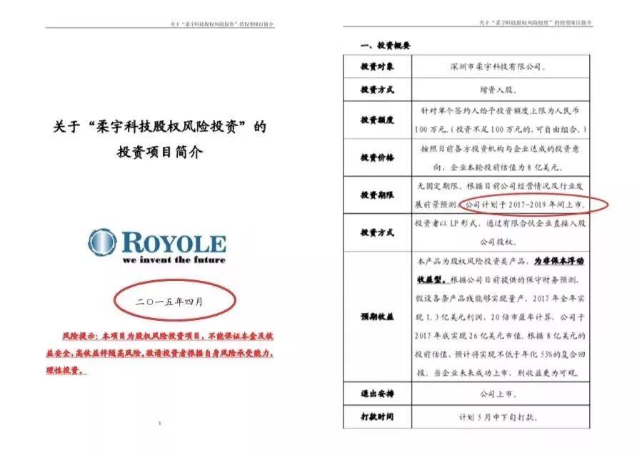 我们独家获得的柔宇科技2015年4月写就的《关于“柔宇科技股权风险投资”的投资项目简介》,提到公司计划于2017年到2019年上市。2016年年初举办的年会上,柔宇科技送出了奔驰和不少现金,可谓一时风光无两。而在2017年9月,它完成了一笔约5.6亿美元的债权融资,投资方包括中信银行、农业银行、工商银行、中国银行和平安银行。