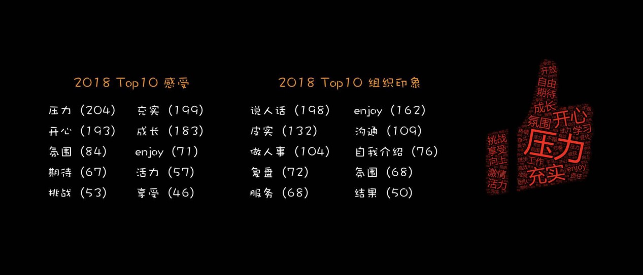 他演讲中分享了公司的一份匿名调查,该调查结果显示,大多数人喜欢压力大,并因此充实和快乐,“如果你在这个公司感受不到压力,你应该离开,因为这个公司快挂了;如果你的部门没有压力,你应该要求转岗,因为你们的部门快被取消了。”
