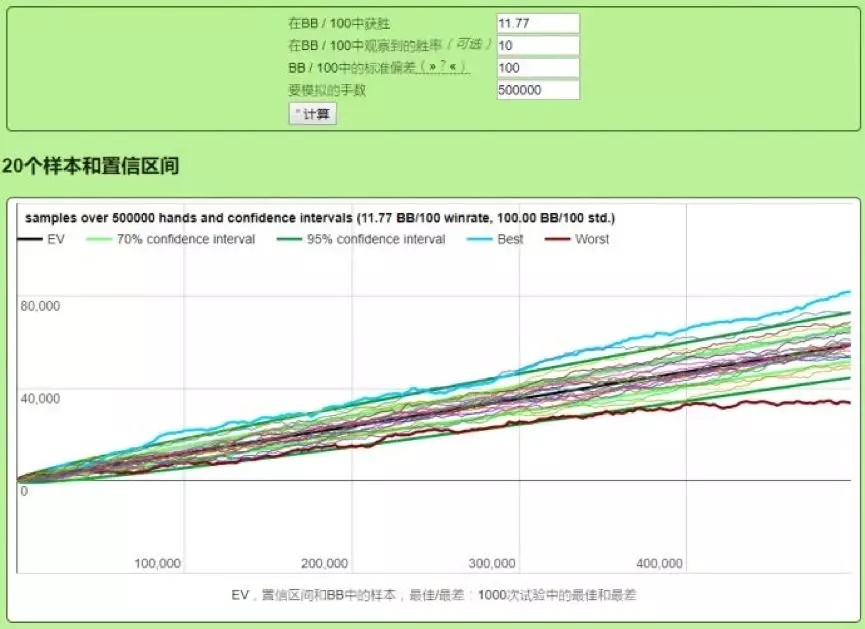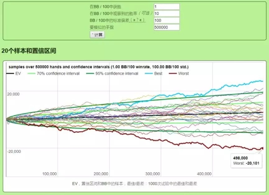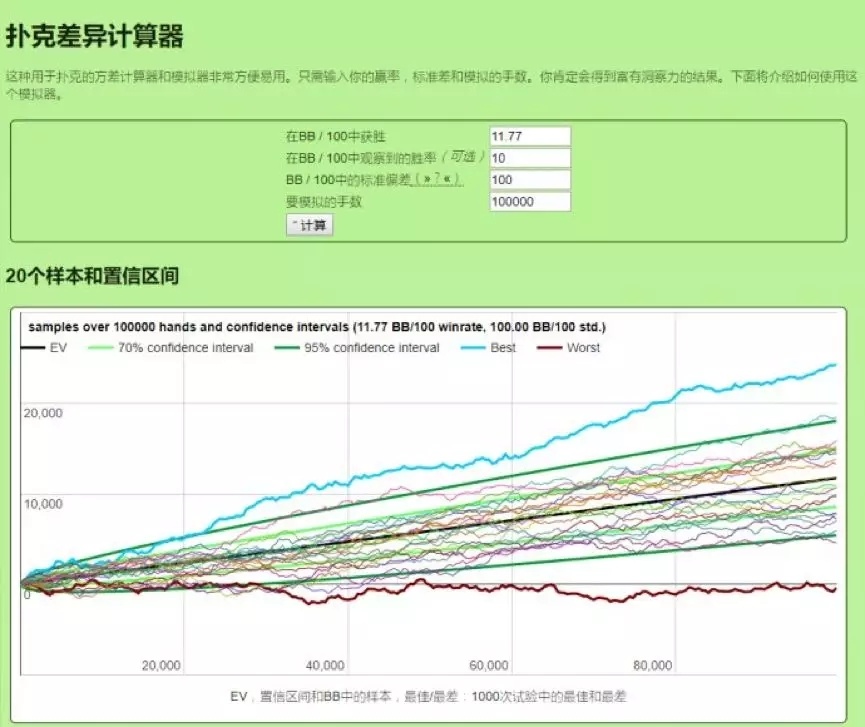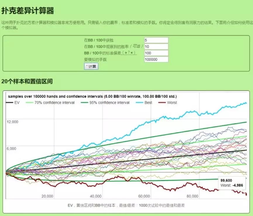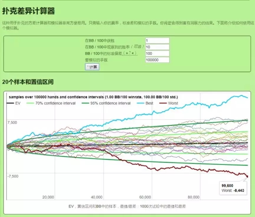 这里有一个扑克差异计算器网站供我们来计算扑克的波动。