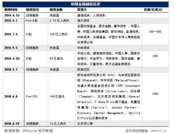 2018年6月,蚂蚁金服对外宣布新一轮融资,融资总金额140亿美元,这也是全球迄今为止最大的单笔私募融资。此轮融资除原有股东继续跟投外,新加坡政府投资公司、马来西亚国库控股、华平投资、加拿大养老基金投资公司、银湖投资、淡马锡、泛大西洋资本集团、T.Rowe Price旗下基金、凯雷投资集团等参投该轮融资。本轮融资主要用于支付宝全球化拓展,自主科研投入和全球知名人才招募,以及培育新兴市场本地科技人才。