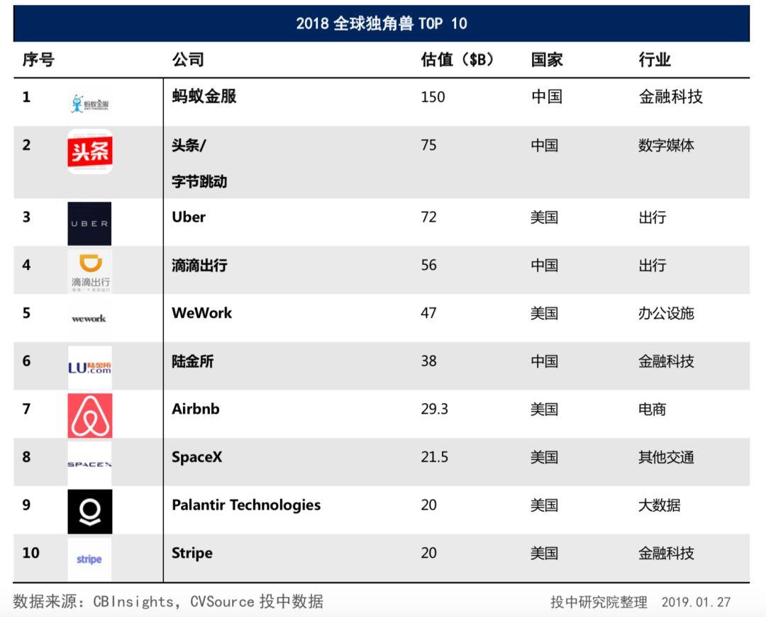 蚂蚁金服估值已经达到1500亿美元,成为全球名副其实的“超级独角兽”状元。根据CBInsights及CVSource投中数据,目前全球十大独角兽,集中分布在中国(4)和美国(6),从行业看,主要集中在金融科技领域(共3家)以及出行领域(共2家)。