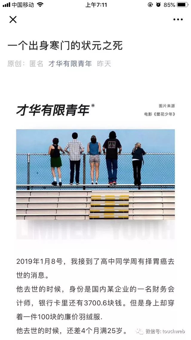 大家好,我们是才华有限青年团队。 昨天下午,我们推送了一篇文章:《一个出身寒门的状元之死》,