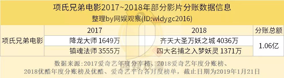 项氏兄弟电影部分分账总额