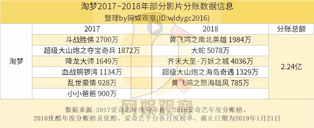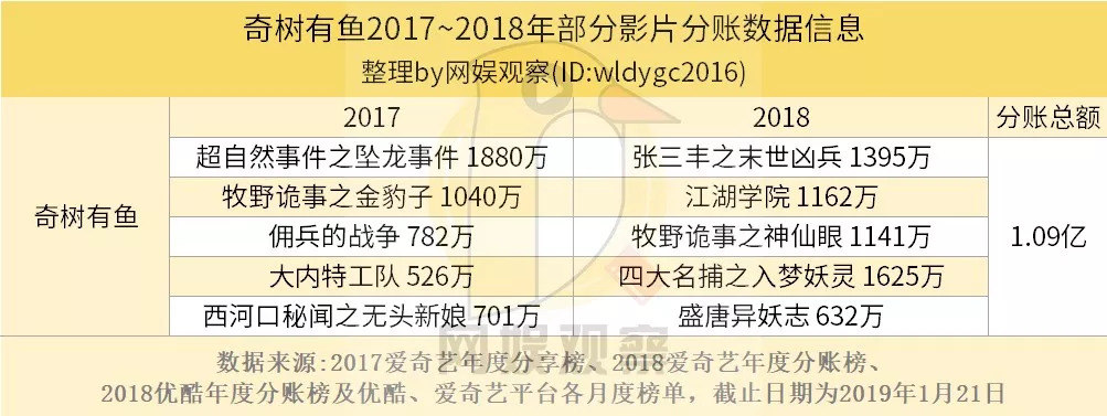 先来看一组数据:2017年爱奇艺网络电影分账top20总额为2.3亿,全年预估票房分账总额超3亿;2018年爱奇艺、优酷网络电影分账top10总额为4.6亿,全年全网预估票房分账总额达7亿。