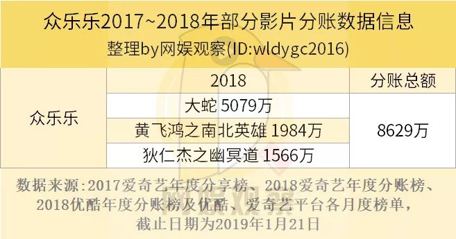 众乐乐电影部分分账总额