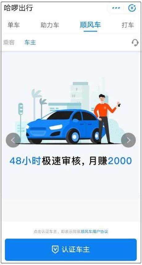 哈啰单车从“两轮”到“四轮”的变化,是缓缓图之、一步一个脚印的战略性变革。自2018年9月改名以来,哈啰出行就先后与嘀嗒出行、首汽约车合作,联手推出网约车业务。去年底,哈啰出行过渡至顺风车业务,打出“顺风车主招聘,顺路拼车赚油费”的广告。
