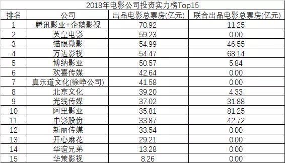 据微信号“中国电影产业”统计,在2018年,以腾讯影业和企鹅影视为代表的腾讯系电影公司斩获了70.92亿票房,占年度总票房的11.6%,成为年度票房贡献力最高的公司。而这其中并未包含腾讯影业参与中国区推广的《头号玩家》(13.96亿)《海王》(20.08亿)等影片的票房成绩。