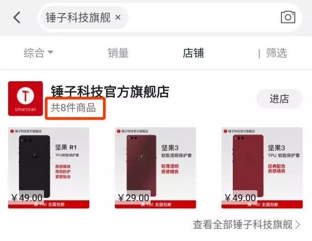 锤子科技天猫店仅剩手机壳,天猫:已售空在补货、非平台下架