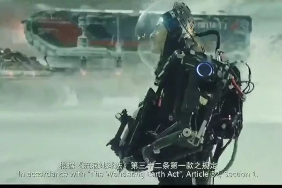 从影片开头刘启与做假证的干仗开始,套在人体上的智能强化外骨骼就频繁出镜,极为吸睛。之后电影中的救援队也都装有这类强化外骨骼,正是靠着它队员们才能手动推动“撞针”,激发了行星发动机内的核聚变反应。