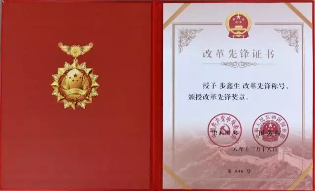 改革开放 40 周年,步鑫生荣获「改革先锋」奖章