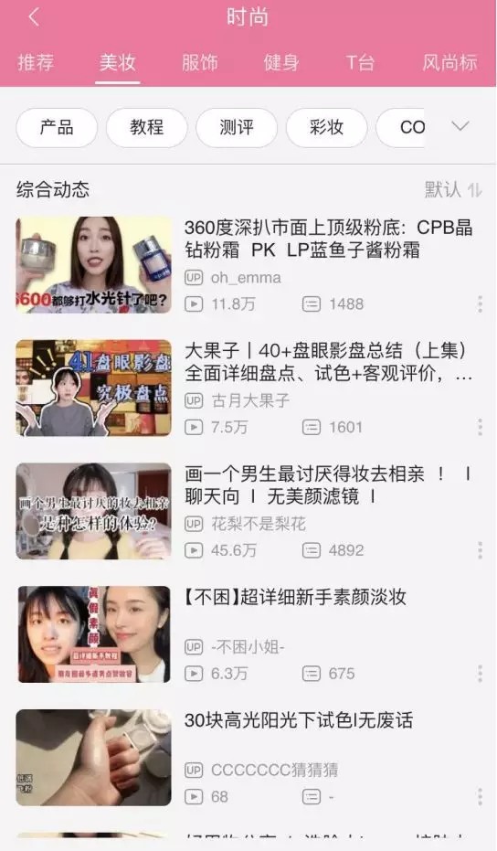 根据每个区域UP主内容属性不同,B站用户被“种草”的东西各不相同。以“女人>小孩>老人>狗>男人”的消费哲学来说,B站上以女性用户为基准的时尚板块内美妆区、服饰区等是一片广阔的“草场”,各类美妆UP主产出视频内容,内容传播与UP主本人情感因素推动,用户产生消费冲动。功能性上时尚区与小红书拥有类似的带货能力,内容转化为电商流量。