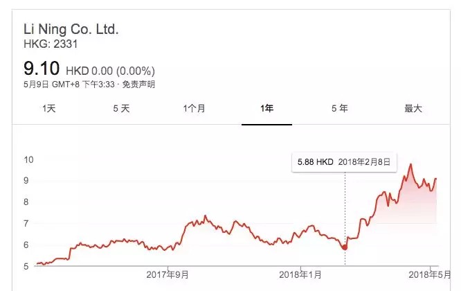 资本市场的反馈同样积极,截止2019年2月18日休市,李宁股价为9.91港元/股,市值达到217亿港元。