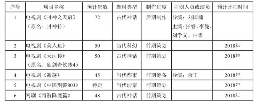 2017年6月份,新文化公告称,与爱奇艺以及北京奇艺世纪科技有限公司签订了4.2亿元的《电视剧<美人鱼>独家许可使用协议》,与北京爱奇艺科技有限公司签订了2.88亿元的《网络剧<西游降魔篇>独家投资协议》;同年12月,新文化公告了公司与PDAL及白一骢创办的灵河文化签订了《合作意向协议》,三方共同开发以电影IP 及原创剧本为主的互联网视频网站内容,由PDAL授权包括《食神》、《喜剧之王》在内的十套季播网剧,授权金额预计达到1.68亿。