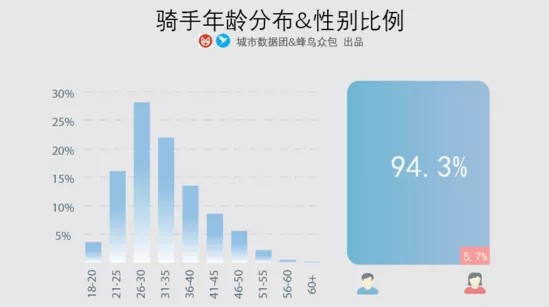 外卖骑手的平均年龄在26-30岁左右,35岁以下占比近70%。