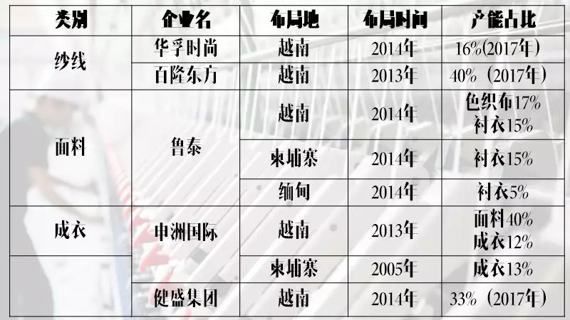 国内纺织业制造龙头东南亚扩产情况