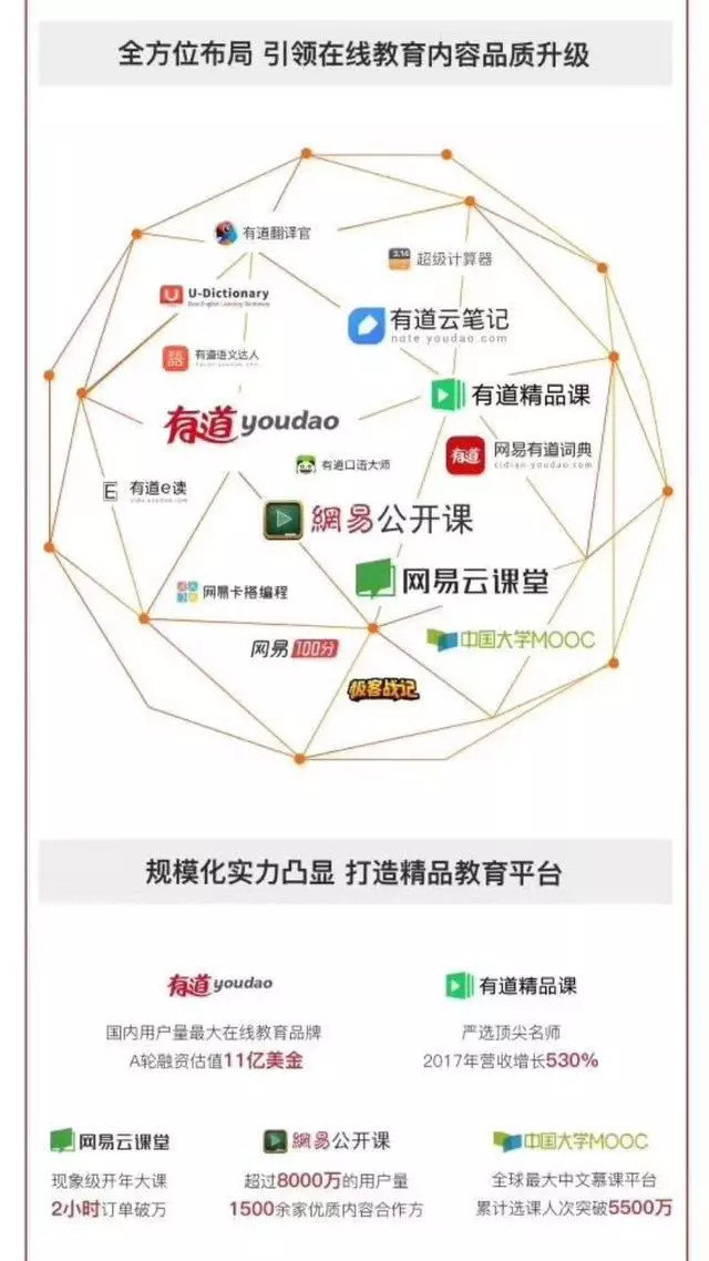从网易公开课、网易云课堂再到中国大学MOOC、有道精品课等,网易在国内在线教育领域打造了多款普及型产品。