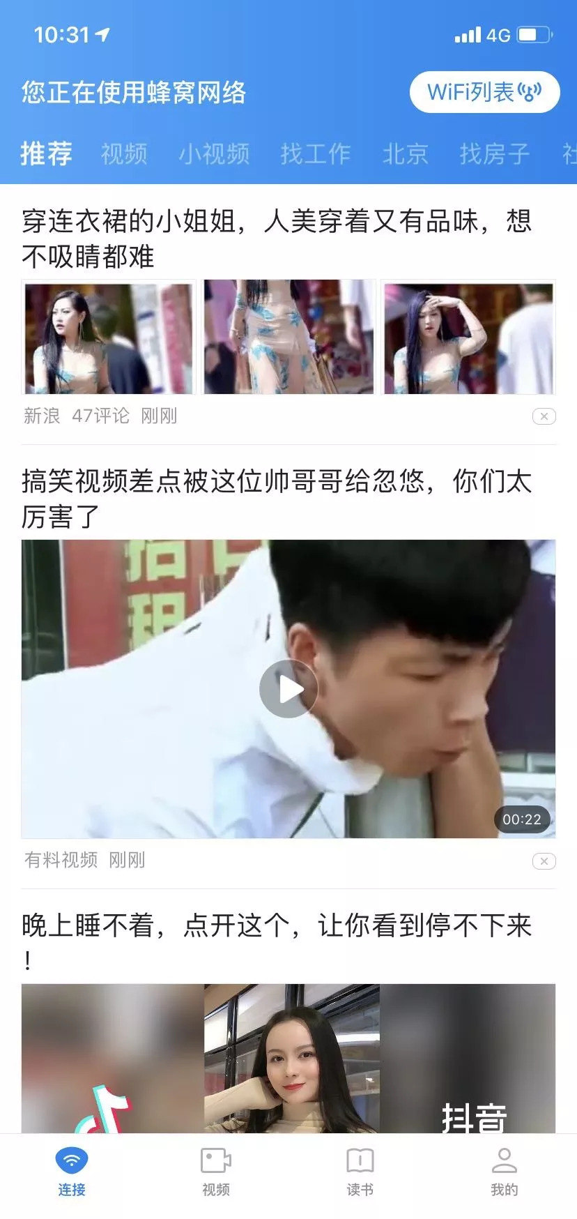 如果现在再去把wifi万能钥匙当作一款连接热点、蹭网的软件,未免有些偏颇。在APP主页面,wifi连接功能只占很小部分,更多的篇幅让位给了信息流和短视频。