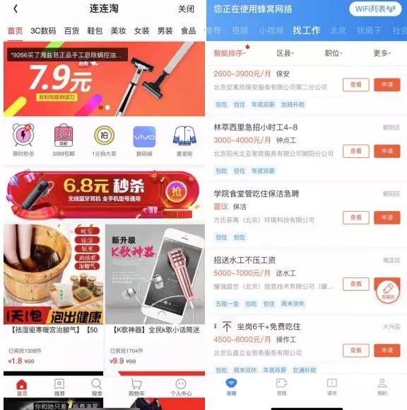 连尚系的产品内容也在整体为下沉用户提供服务,资讯以八卦野史居多,网文偏向逆袭修真,招聘渠道面向蓝领为主,电商主打低价品类……