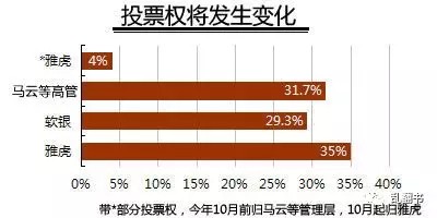 根据阿里巴巴B2B业务的招股说明书——2010年10月,雅虎的投票权将增加至39%,马云及管理层的投票权将降为31.7%;雅虎的董事席位将增加一个,与马云和管理团队的董事席位数目持平;「马云不被辞退」条款也就此到期。
