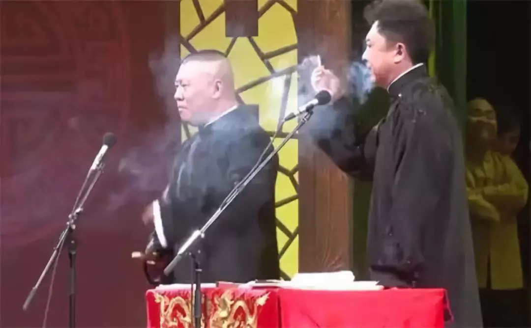舞台上偶尔兴奋了,于谦甚至会当着观众面点起一支烟,吞云吐雾表情如同成仙。袅袅升起的烟圈里,荡漾着一位相声皇后的艺术修养,飘荡着观众们无处安放的热情,更饱含着我们一代代人对空气味道的记忆。