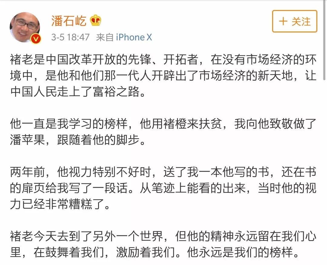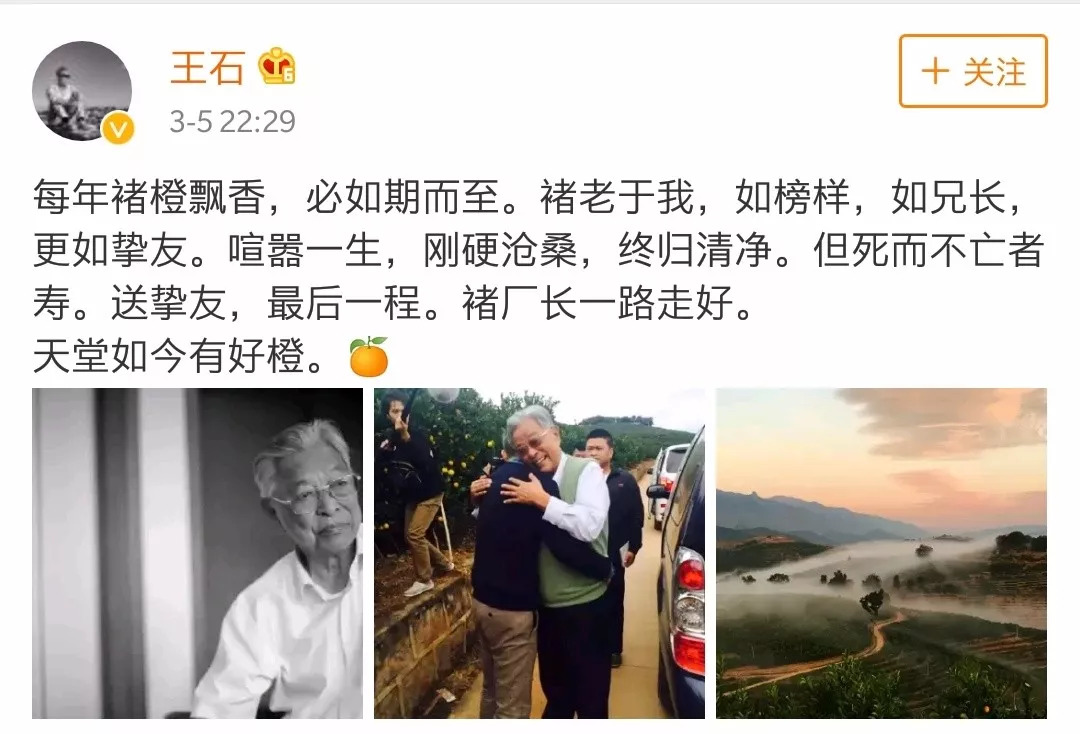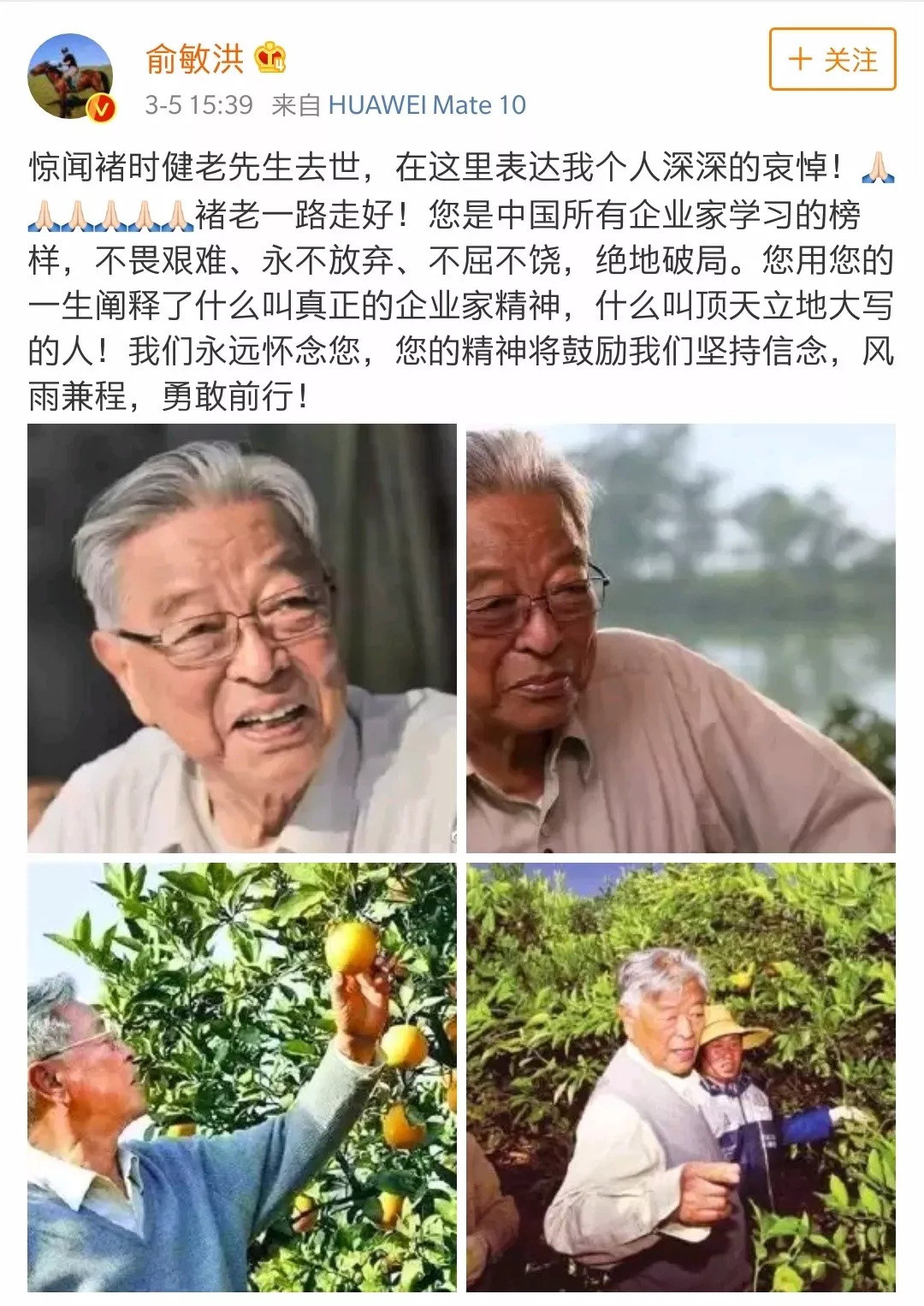 马云、王健林、王石、俞敏洪、潘石屹等企业家纷纷悼念褚时健