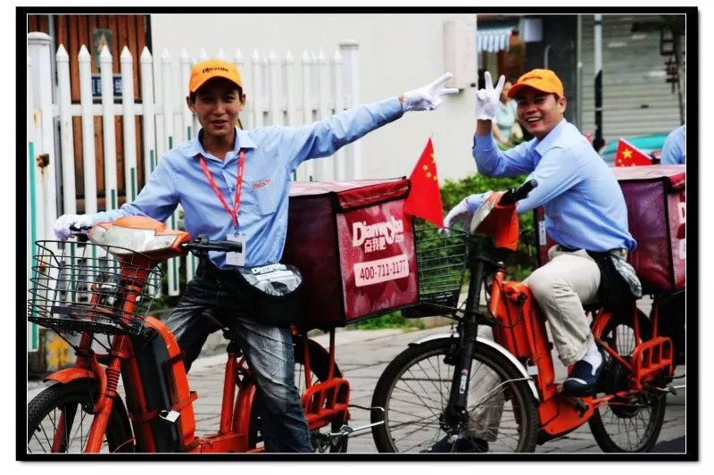 当时的杭州城里,自建的配送团队、穿着统一蓝色衬衫制服、挎着统一腰包的点我达“骑士”成了中国第一批有明显职业群体特征的“外卖小哥”。