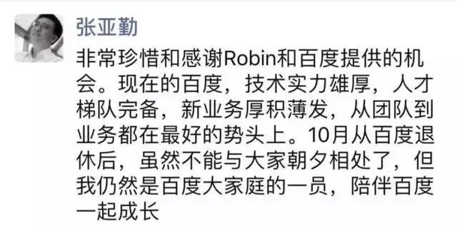 百度推出高管退休计划,总裁张亚勤将于10月退休