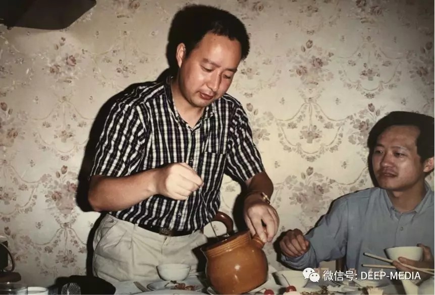 这是1997年,我带队去上海筹办时尚杂志在上海的第一次年会。刘江抵达上海和我们会合。当天正巧是刘江的生日,我设宴为他庆祝,并特地为他舀汤。