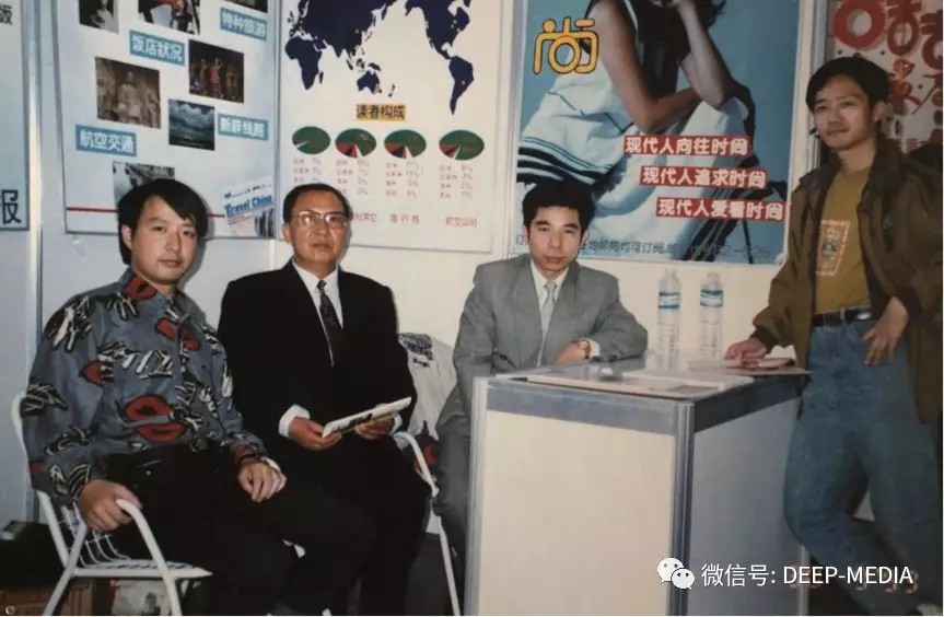 1993年9月30日,新鲜出炉的《时尚》杂志参加展览会,四位元老的第一张工作合影。那时我们一无所有,但对未来充满激情。
