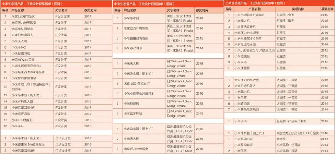 (品质:小米生态链产品获奖无数,统计截止于2017年3月,点击可看大图)