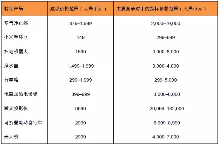 (价格:小米的产品普遍比对手低50%以上,点击可看大图)