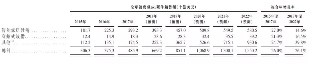 据艾瑞咨询资料,2022年全球消费级IoT硬件(智能家居、穿戴设备)销售额将达到1.55万亿美元,折合10万亿人民币,这还只是未来四年的情况。