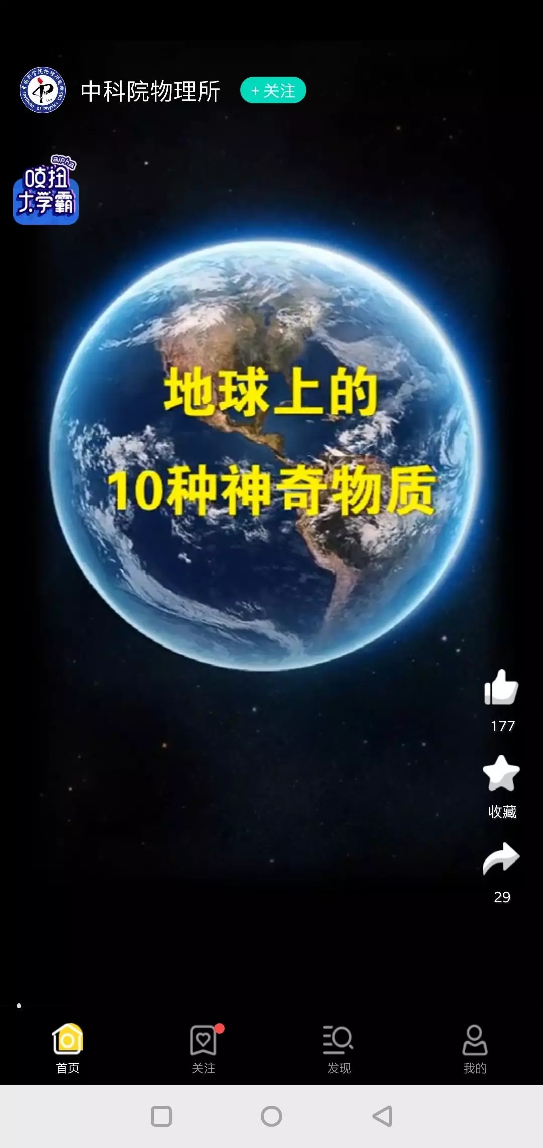 近日,果壳上线知识短视频产品“吱扭”,内容涵盖科技、娱乐、文化等领域。目前,“吱扭”内容生产方式为 PGC ,并无用户 UGC 上传视频的入口。吱扭 Feed 流类似抖音,用户可上下滑动全屏查看视频内容。其产品界面较为简洁,设置“首页”、“关注”、“发现”和“我的”四个TAB。