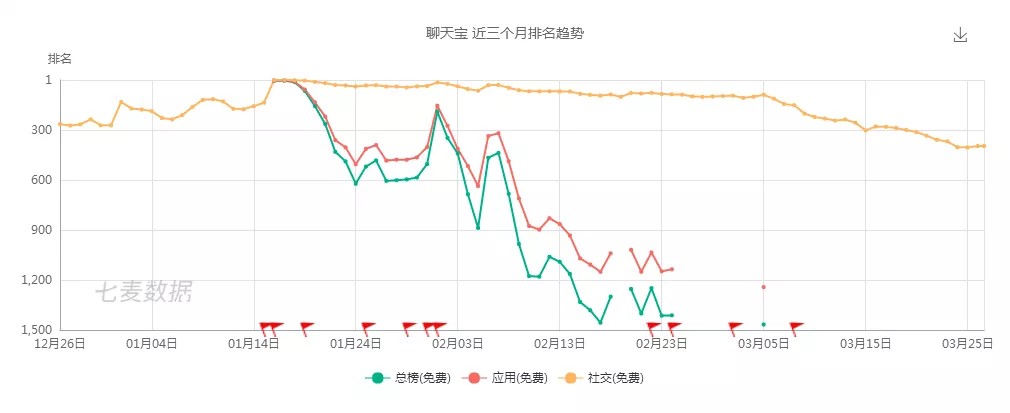 聊天宝在苹果应用商店的排名,数据来源于七麦数据