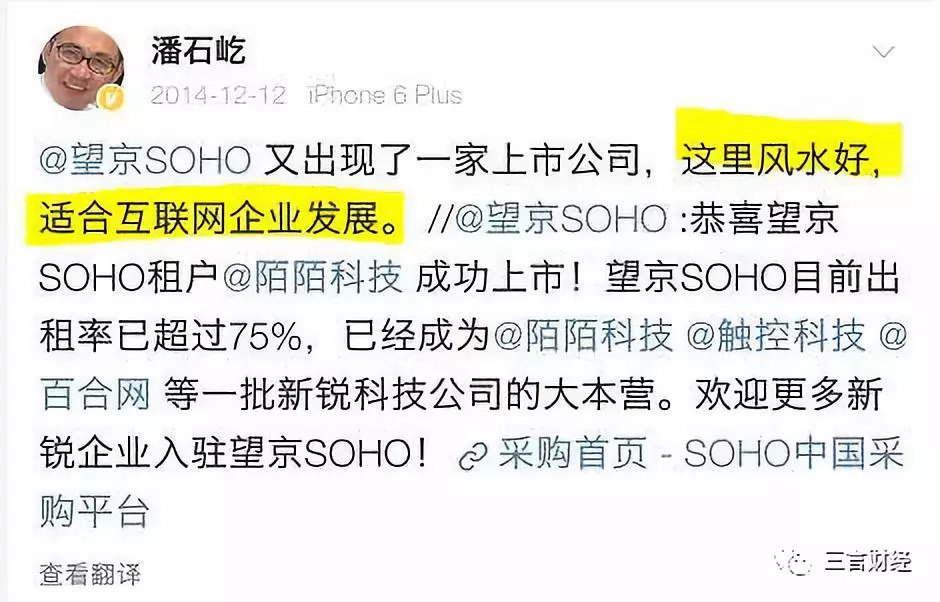 就在不久前,他的SOHO中国还将发文谈望京SOHO风水的自媒体公司告上了法庭:3月18日,SOHO中国官方微信发布声明称,针对自媒体“神棍局”等个人和机构利用封建迷信攻击望京SOHO的言论,公司将依靠法律的手段来解决。