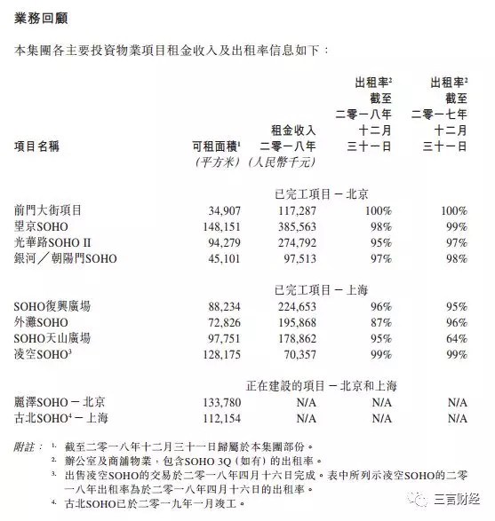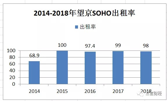 此外,根据三言财经统计,望京SOHO的出租率在2015年就达到了100%,此后一直维持在97%以上,而2018年相比2017年降了1%。