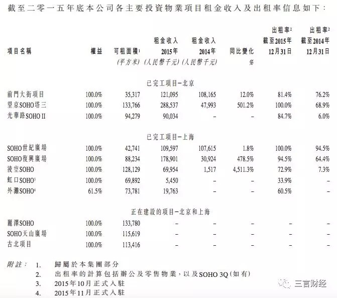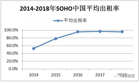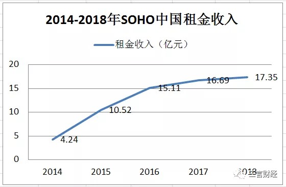 据三言财经统计,自2014年以来,SOHO中国的租金收入显著增加,从2014年的4.24亿上涨至2018年的17.35亿,而平均出租率也从53%上涨至96%。