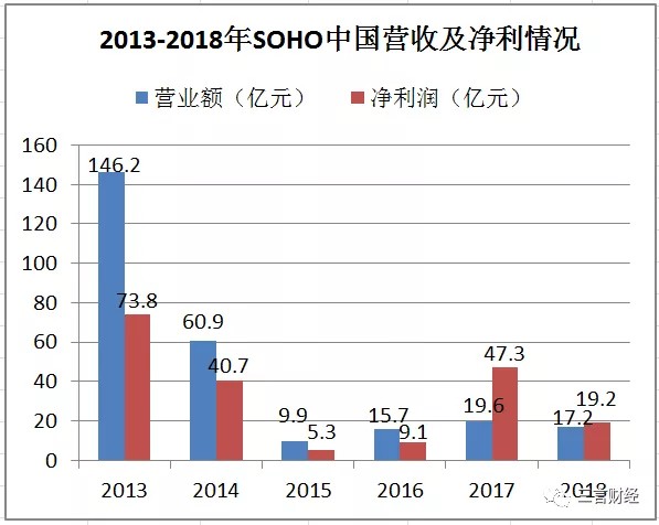 整体来说,自2012年SOHO中国宣布由散售向自持运营模式转型以来,由于不再卖楼,SOHO中国可以说是经历了营业额和利润双重下滑的危局,2015年的营业额和利润还不及2013年的10%。