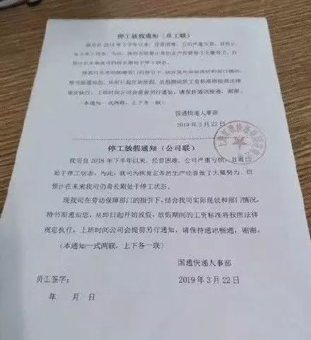 网曝的停工放假通知图片显示,国通预计将长期处于停工状态
