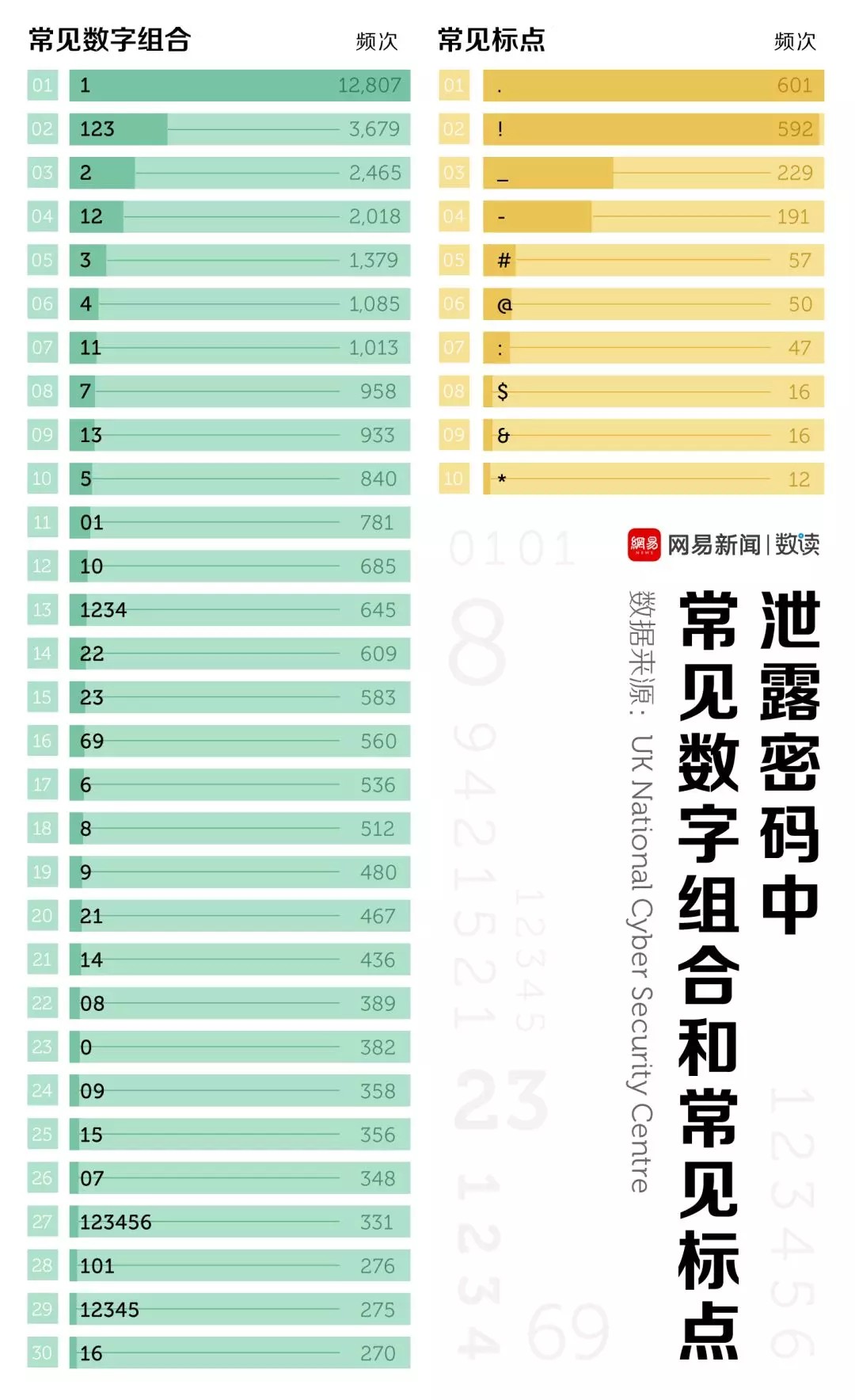 今年四月,英国国家网络安全中心与澳大利亚的网络安全专家特洛伊・亨特合作,基于数据库中存储的现实中曾经泄露出的551,509,767条密码数据集,统计出前10万条最为常用的密码公布,作为黑名单以提醒仍在使用这些密码的用户及时更换密码。