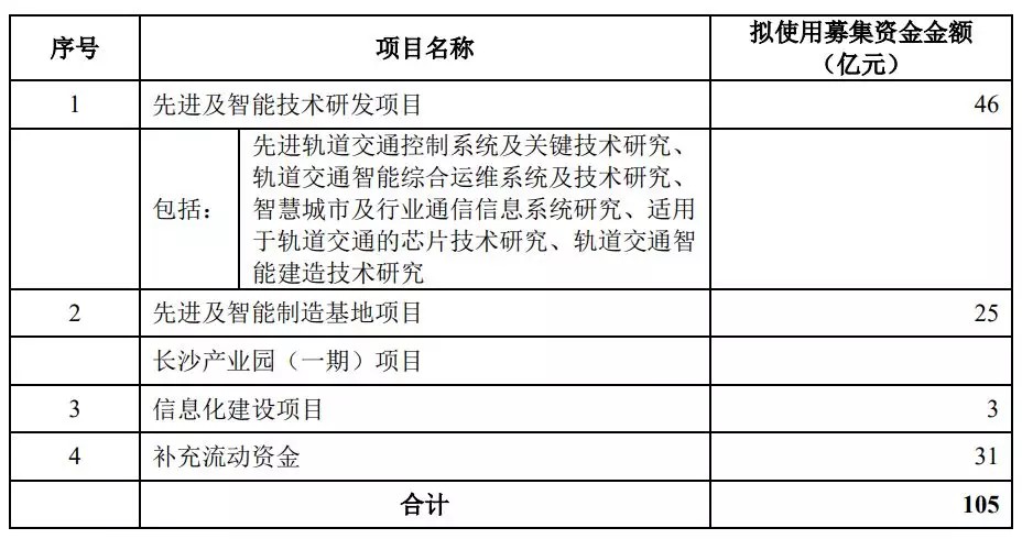 25亿元约24%投入到先进及智能制造基地项目的建设,主要是长沙产业园(一期)项目;另分别有3亿元和31亿元用于信息化建设项目和补充流动资金。