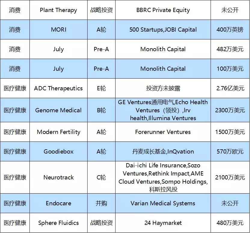 全球投融资周报,与你分享每周的投融资热点。