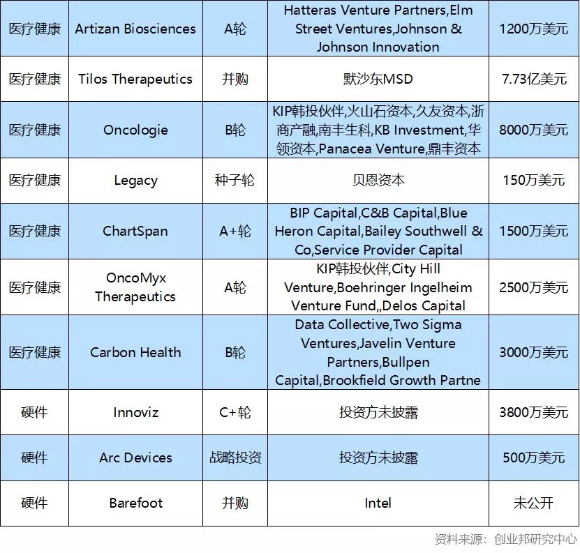 本周国外10大融资事件