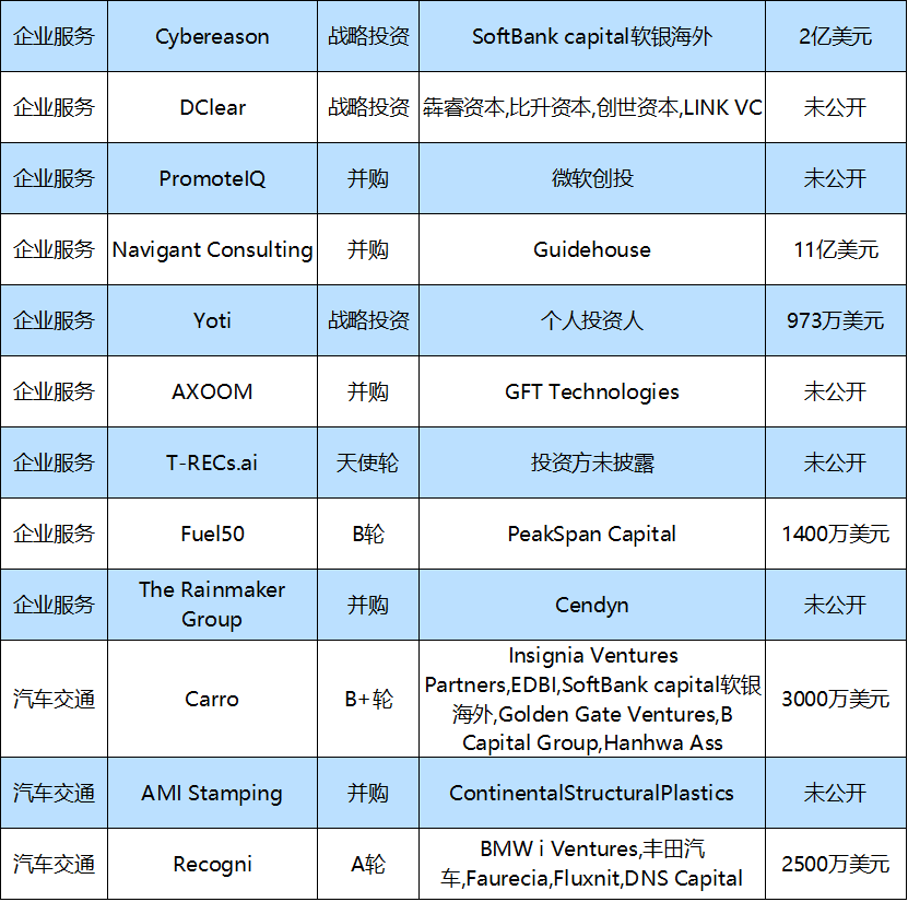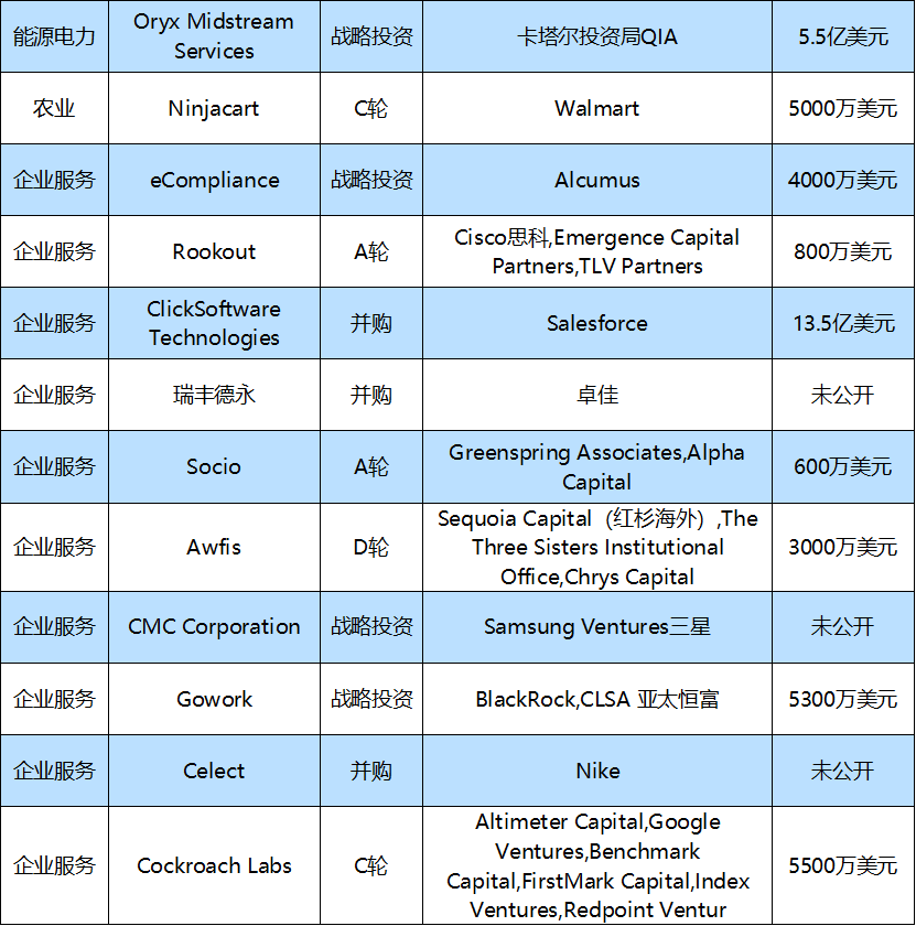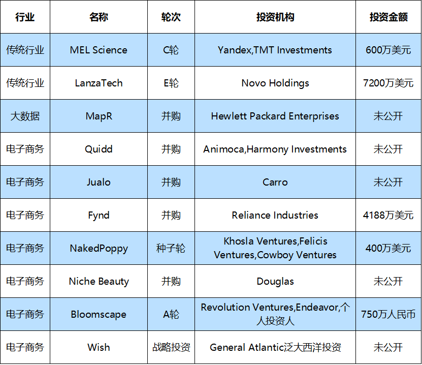 本周国外10大融资事件